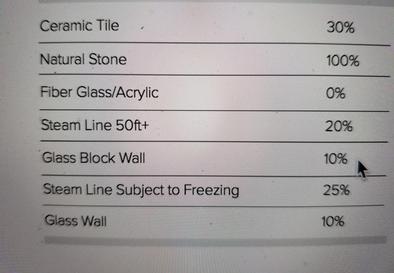 Discounts on Steamcore: Many people cannot afford the Steamcore as it is one of the most expensive steam generators. We offer discounts on returns when people buy the the wrong size. The reason most people return their generator is because one company, for example on their sizing chart say their 6kw will work up to 84 cubic feet. while Steamcore says theirs will work up to 175 cubic feet. This is what I am referring to by wetness of steam. If one puts out 2 gallons and the other puts out 1.5 gallons, the other half gallon can be the difference in the condensate. The more condensate or unevaporated water spit out mixed with the steam, the wetter it will be and the heavier it will cause the steam so it falls to the floor quicker.